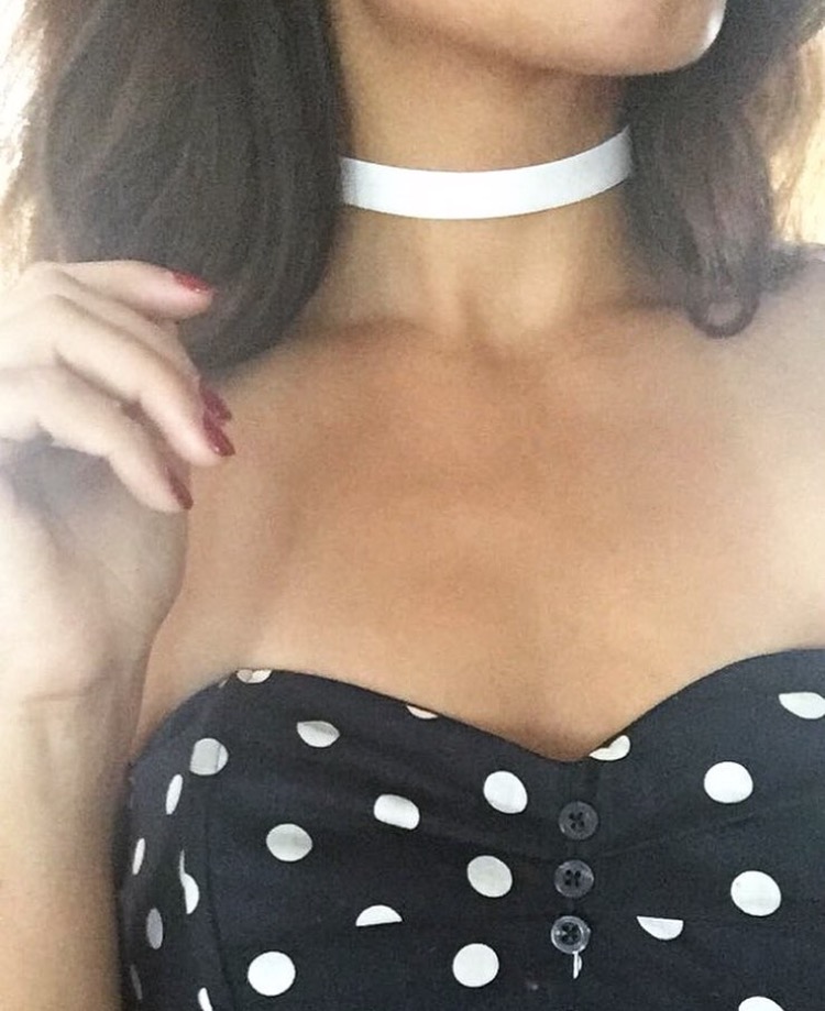 This white choker is nice and stretchy so fits comfortable on the neck. Do a twist to your everyday black choker and switch it up for a white!